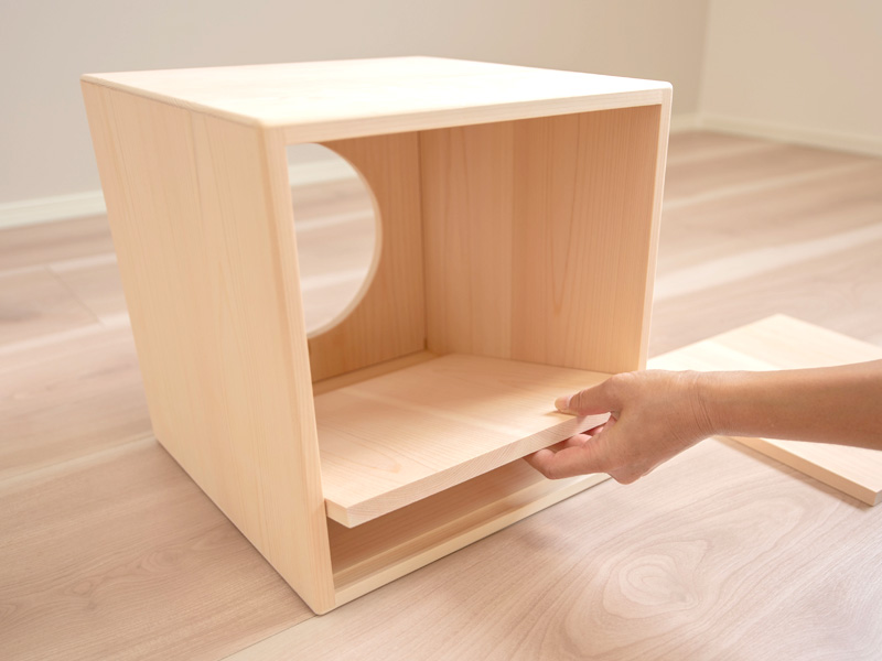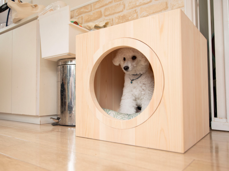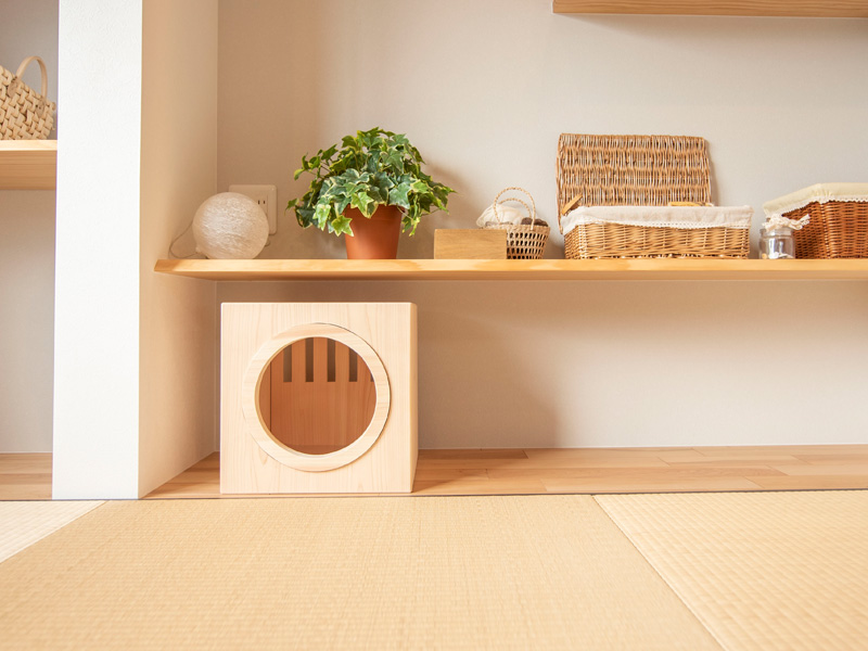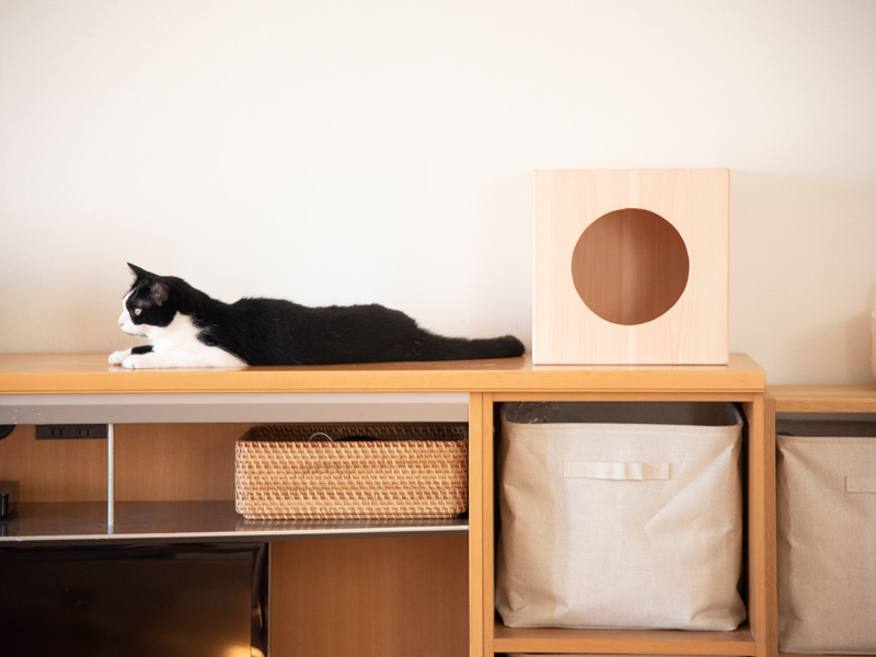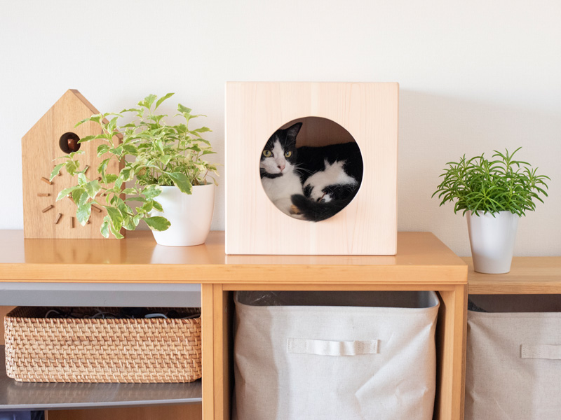 猫用のねぐらです。30cmのコンパクトなキューブ型なので、様々な場所に設置できます。